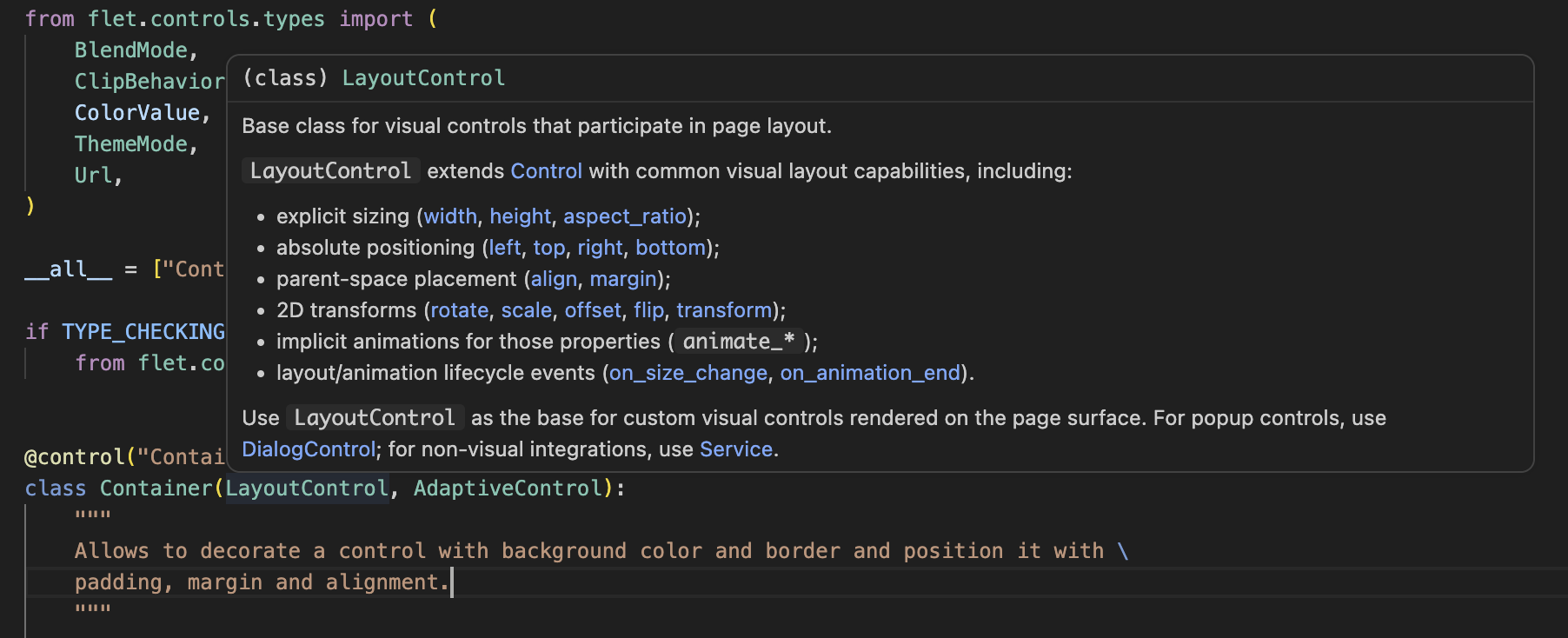 For Flet "v1", @ndonkoHenri made a huge push by moving all API docs into Python docstrings and configuring MkDocs + Material for MkDocs + mkdocstrings to serve Flet documentation. It was a great and timely decision to make docstrings the single source of truth.
